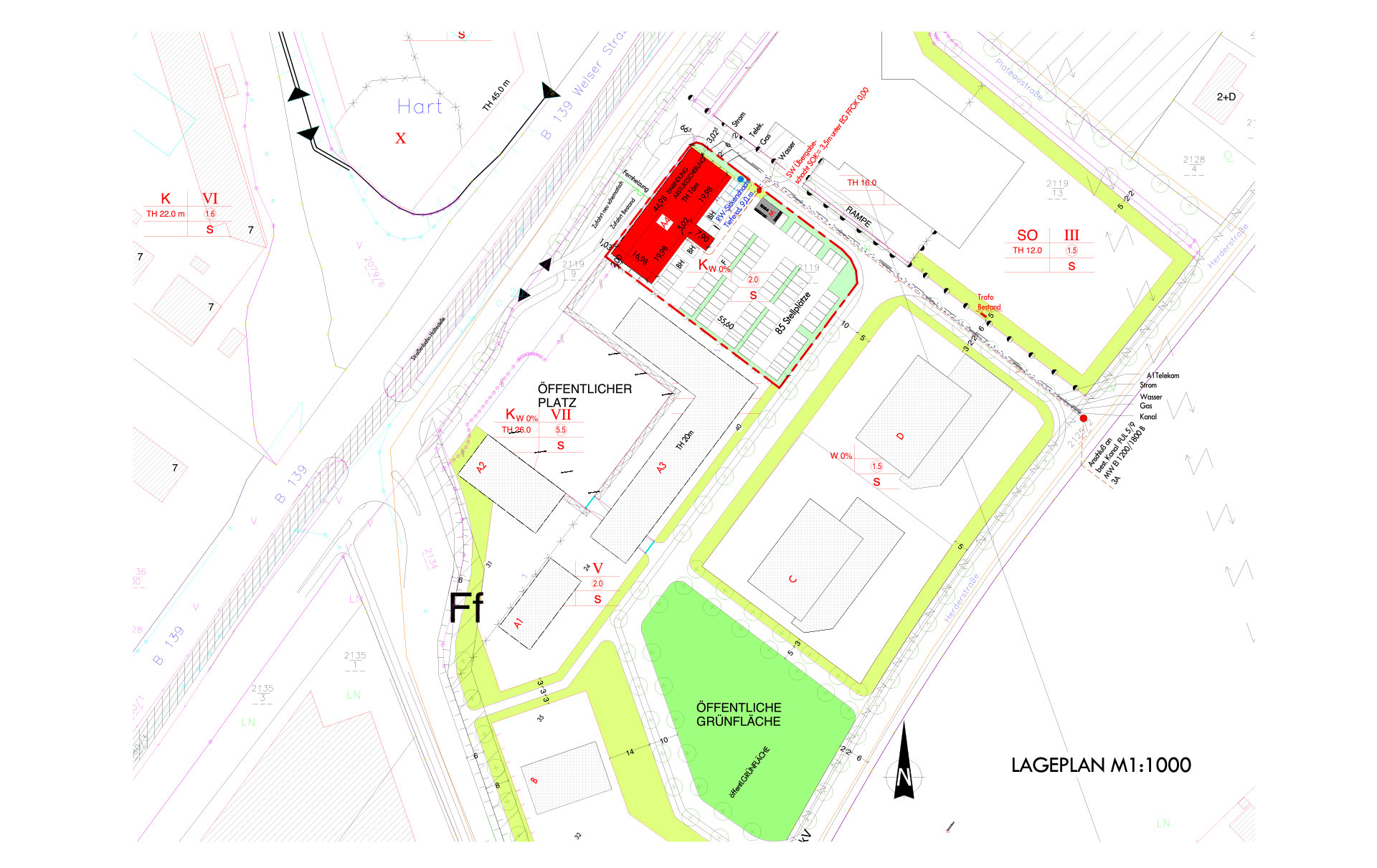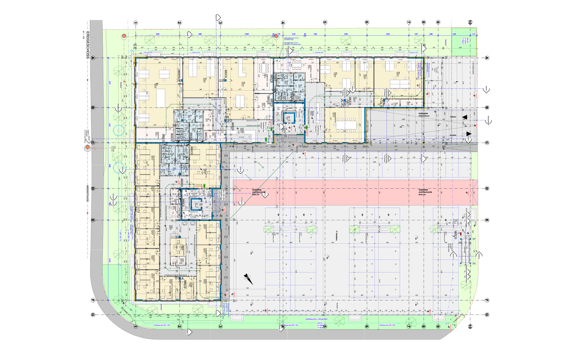 Die Gebäude 1 und 3 wurden 2019 fertiggestellt. Beachten Sie die großzügige Parkplatzsituation sowie die Tiefgarage, welche auf den Visualisierungen 1 und 3 ersichtlich sind. Die Büroflächen sind bestimmt für das Gebäude 1 und 3.