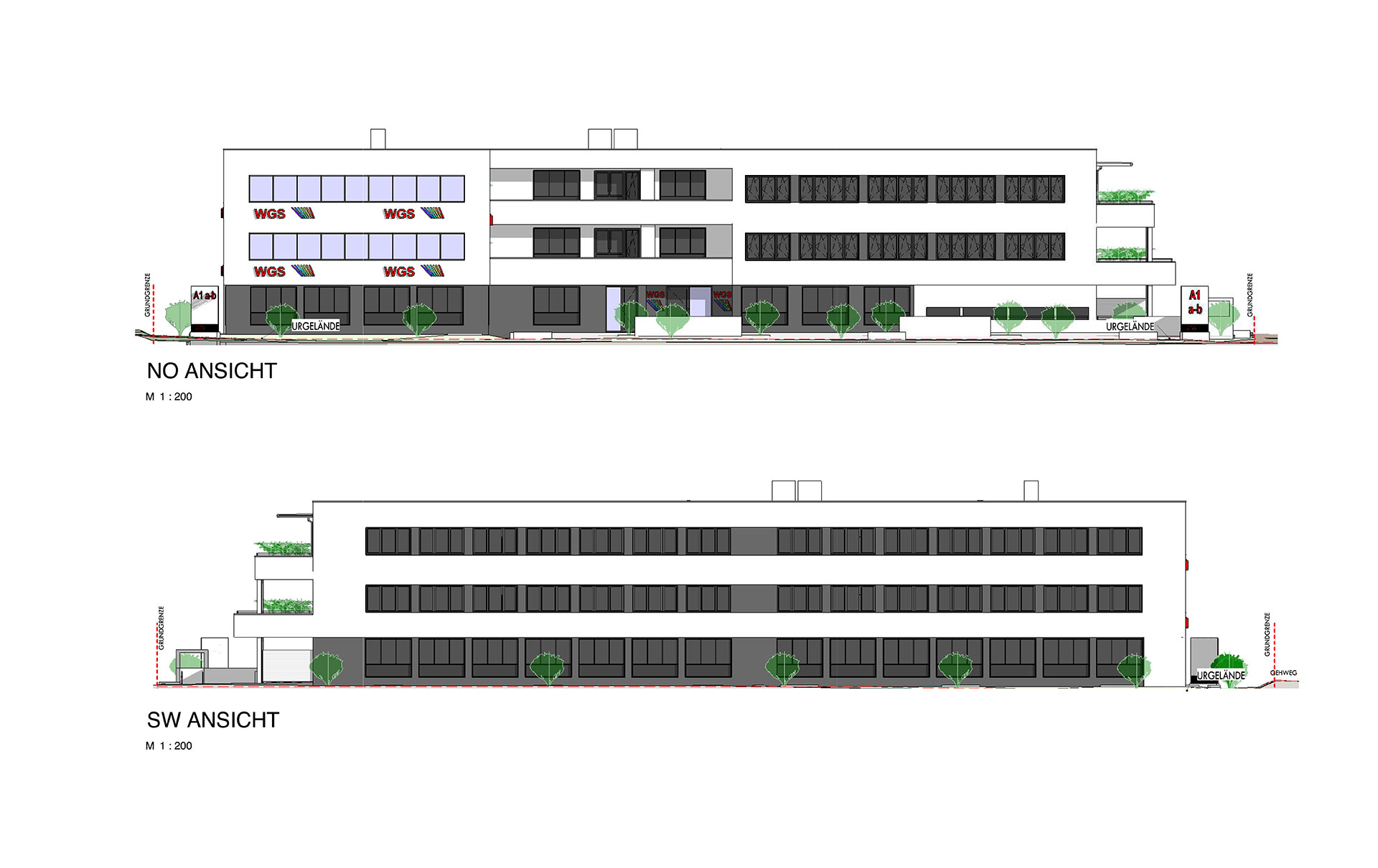 Die Gebäude 1 und 3 sind bereits fertiggestellt und vermietet - siehe Visualisierungen